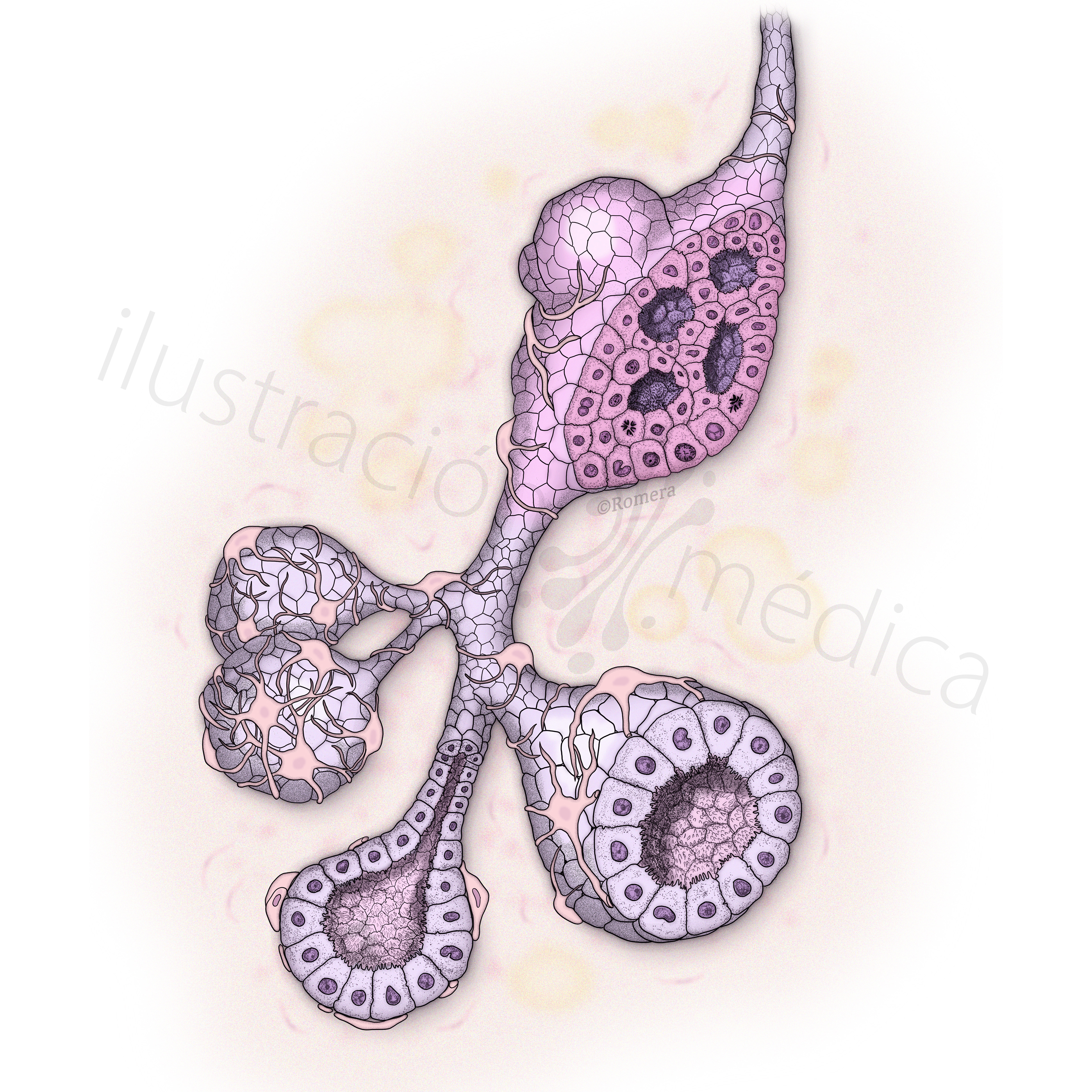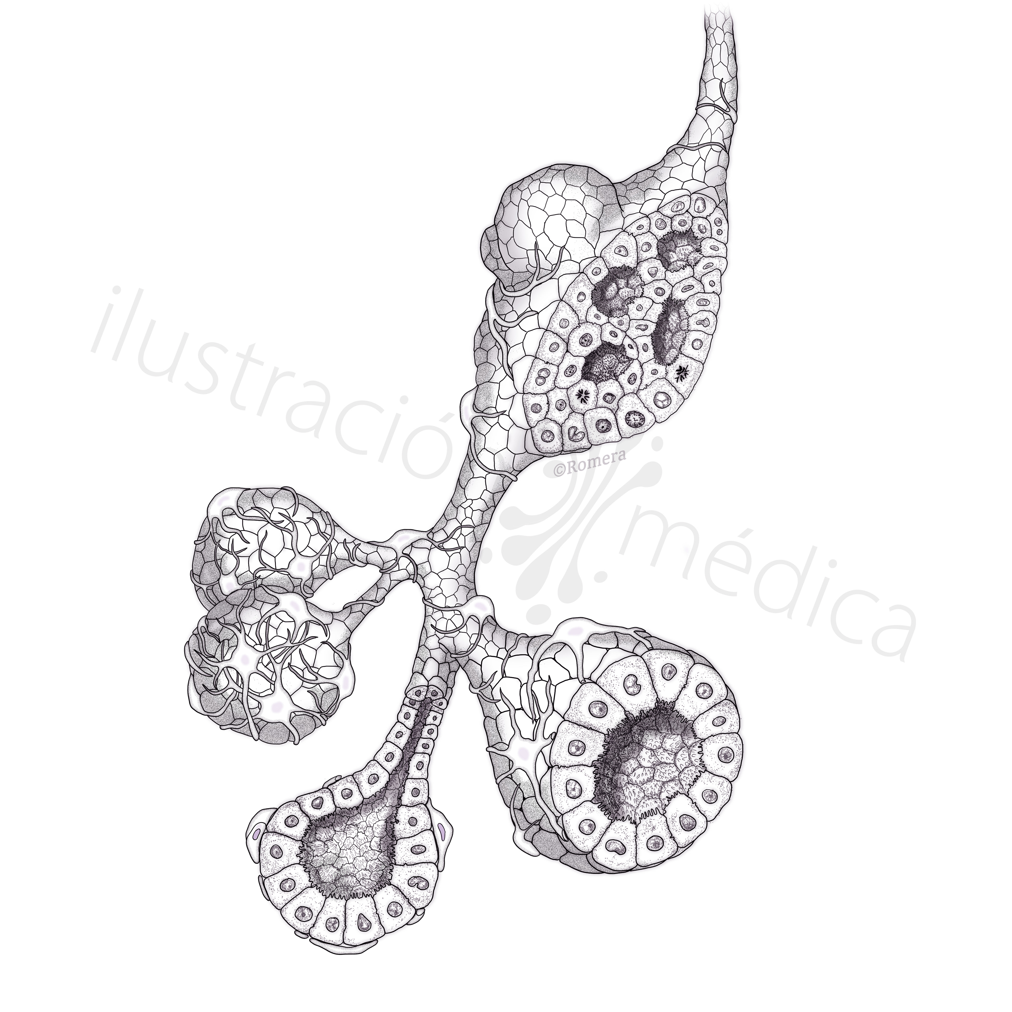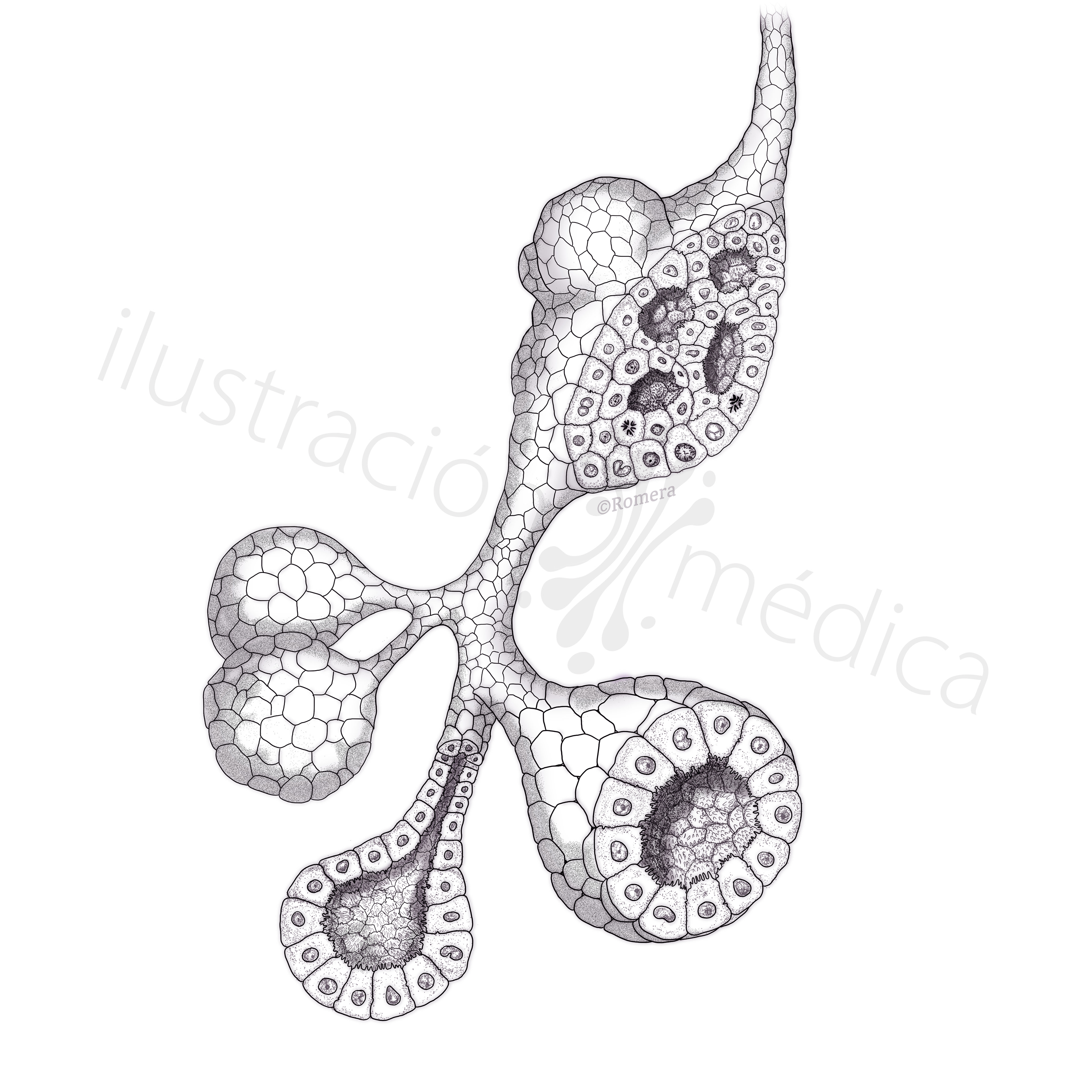 Ilustración para tesis doctoral de la Dr. María José Cambra, Barcelona. Imagen final y etapas previas.