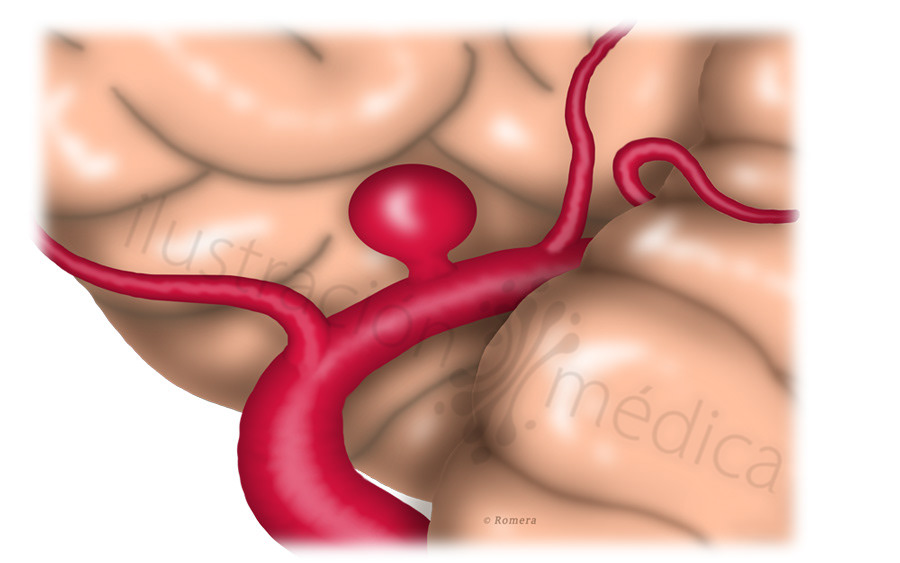 Tratamiento de aneurisma cerebral mediante stent y coil.